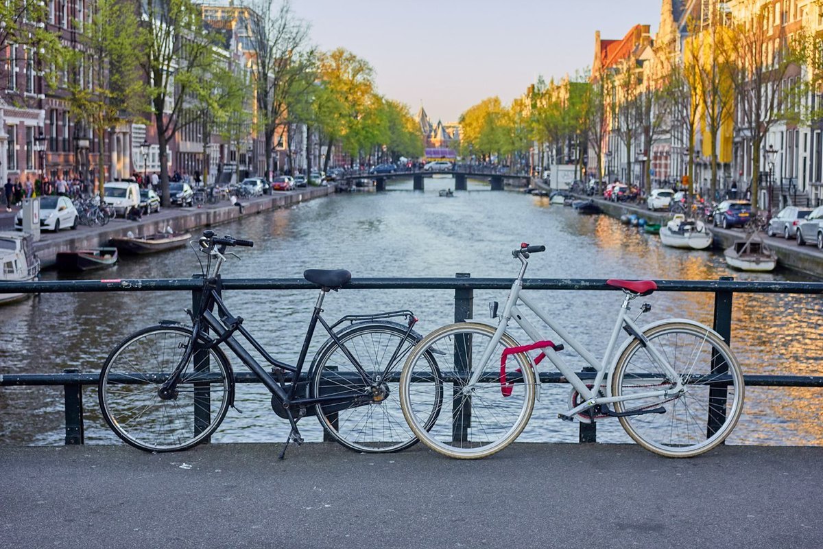 Iconic Subject: The two bicycles are the ultimate symbol of Amsterdam life, offering a personal narrative of companionship, travel, or simply the rhythm of the city.