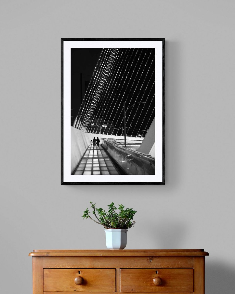 Photo Print Printed on premium, thick archival photo paper. Captures the sharp detail and contrast of the street scene perfectly. Ideal for customers who prefer the high polish of glass framing.